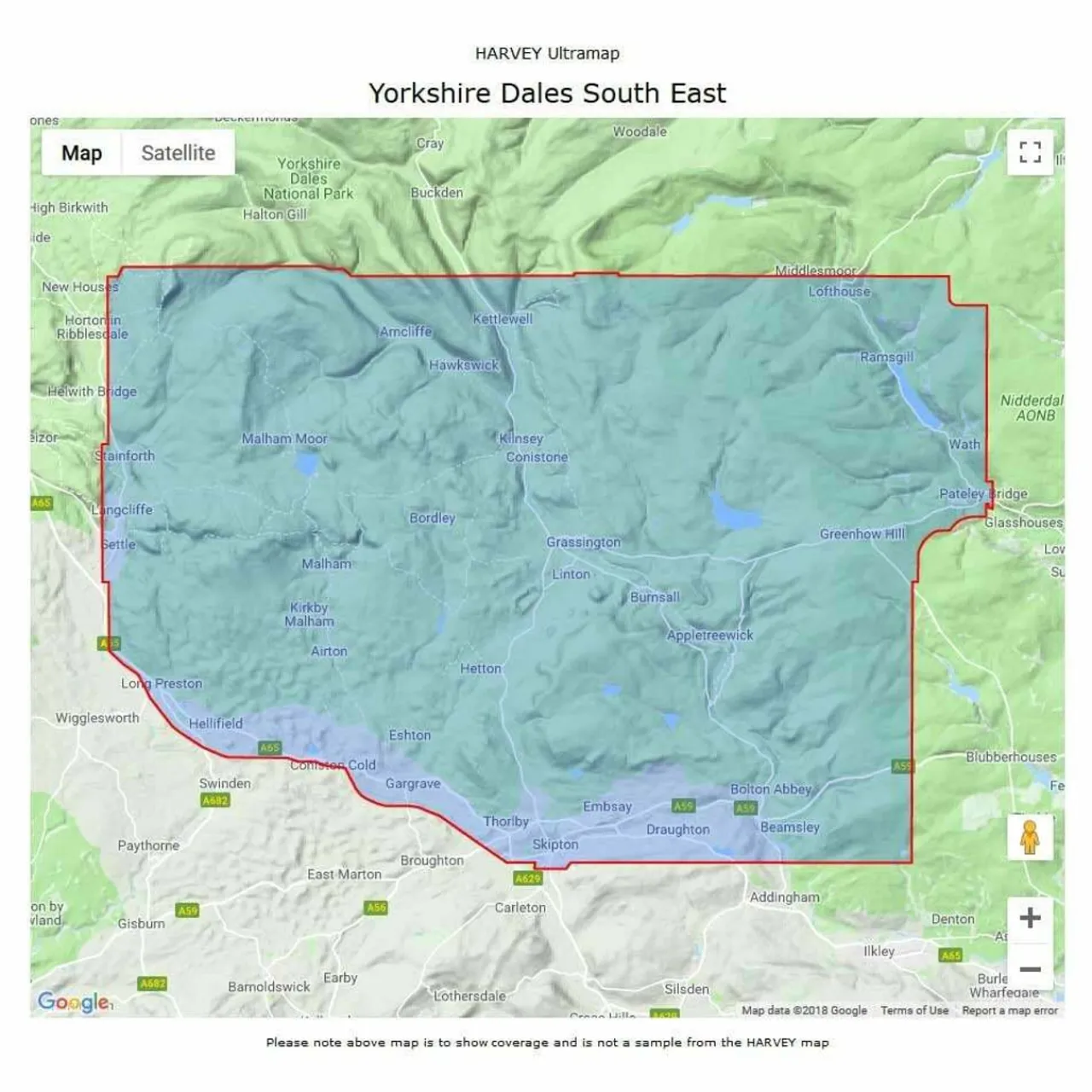 Detailed map for runners and walkers of the south eastern part of the Yorkshire Dales National Park at the magic scale of 1:40,000.