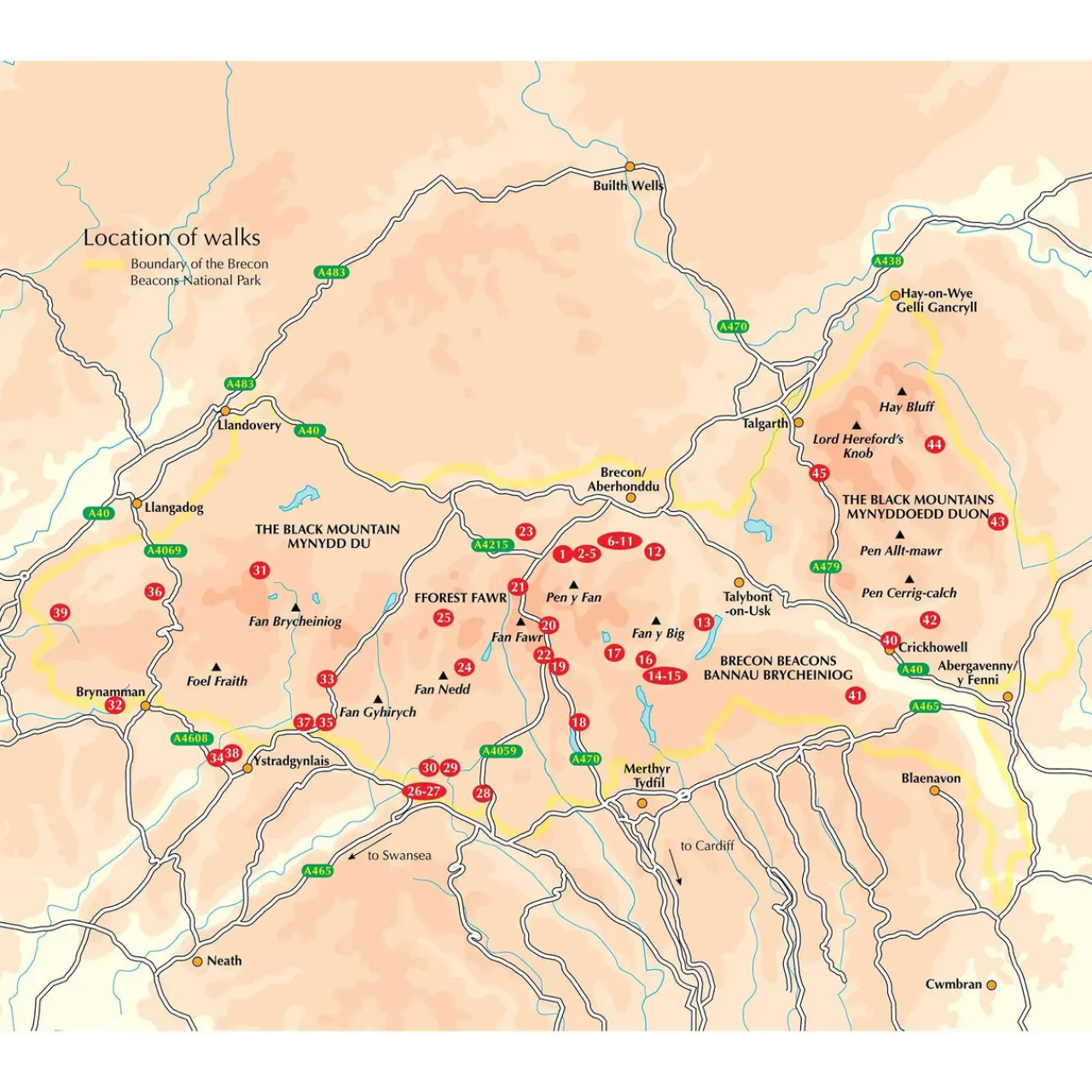 - Difficulty:The 45 routes cater for all abilities and weather conditions. Low-level valley routes are alternatives to the high peaks and ridges of the central Brecon Beacons. The Waterfall Country offers good options in poor weather and there are a variety of different length walks.
