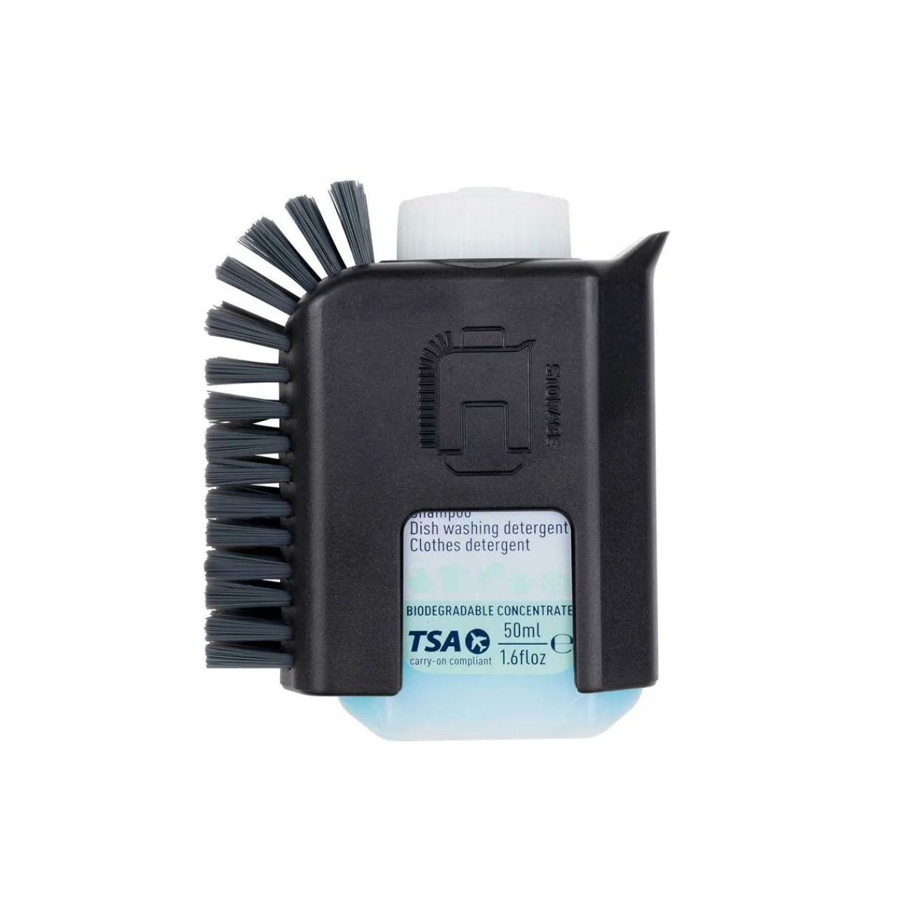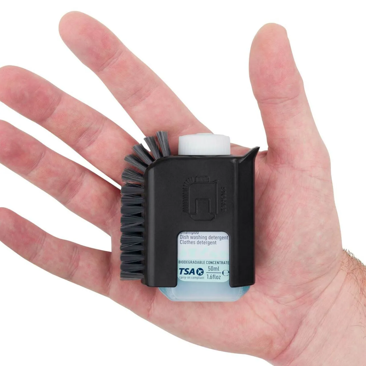 Easy to hold, easy to use, the Pot Scrubber includes a 50ml bottle of Wilderness Wash ready to take on baked-on food residue from camp cooking. Nylon bristles and the integrated scraper mean your pots and tableware will be really clean – not just camp clean.