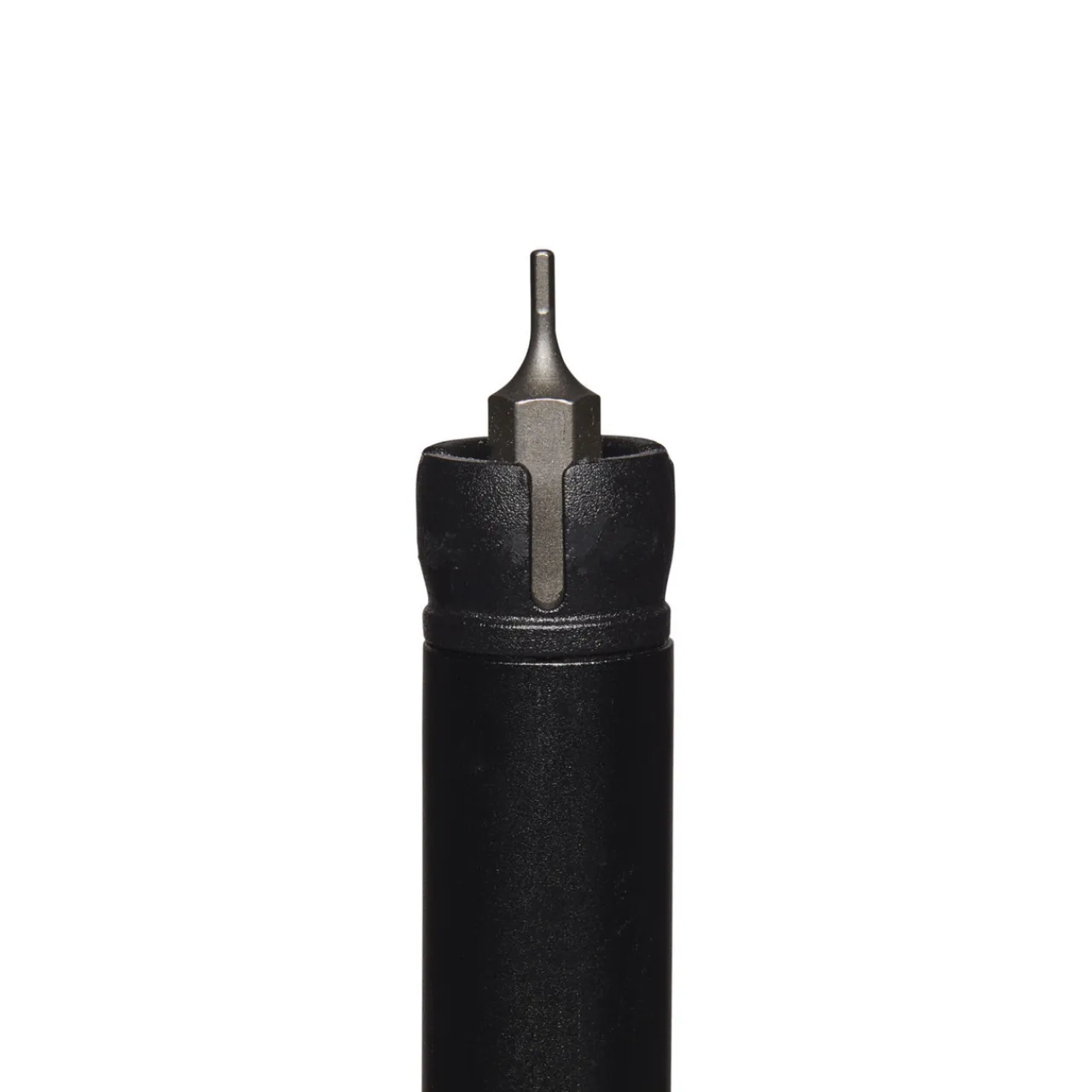 - 1.5 mm hex bit tool built into shaft for in-field maintenance