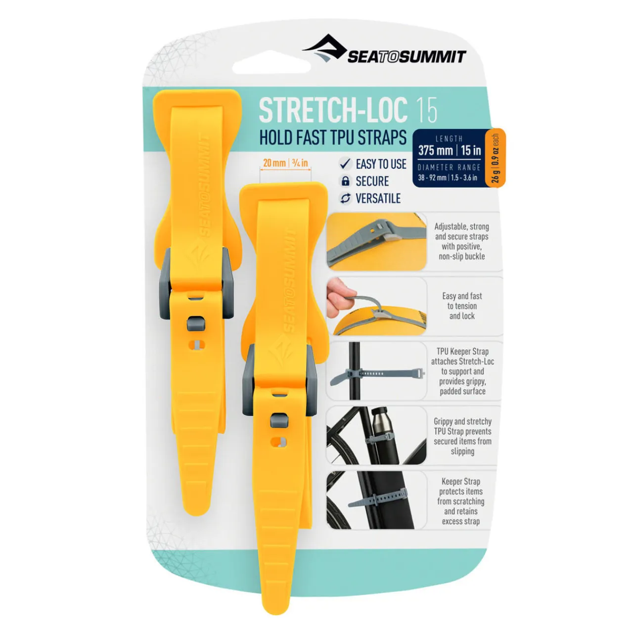 Whether you’re perfecting your bikepacking rig or securing SUP paddles to roof racks, Stretch-Loc straps are an integral part of adventure preparation. For a strong hold, simply wrap the super tough TPU strap around whatever you’re fastening together and lock it in place with the easy-to-use non-slip buckle. Any excess strapping will lie flat against the loop, conveniently out of the way.