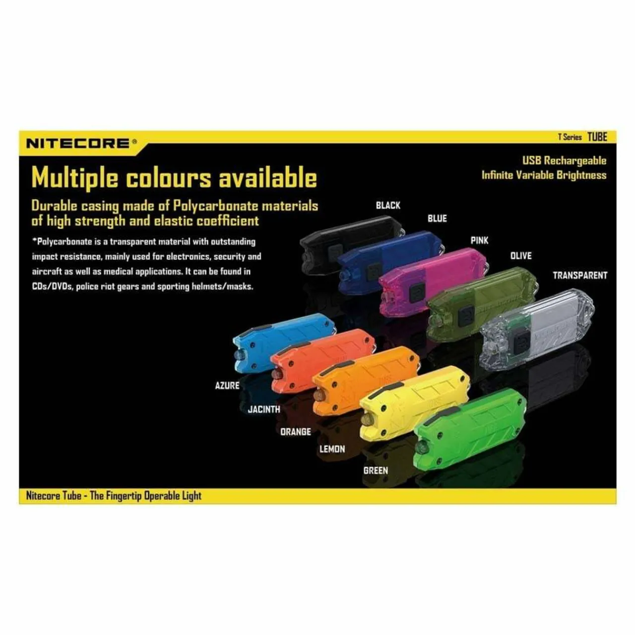 The Nitecore TUBE is a tiny USB rechargeable light with infinite variable brightness. An ideal size for keeping on your keys for everyday use.