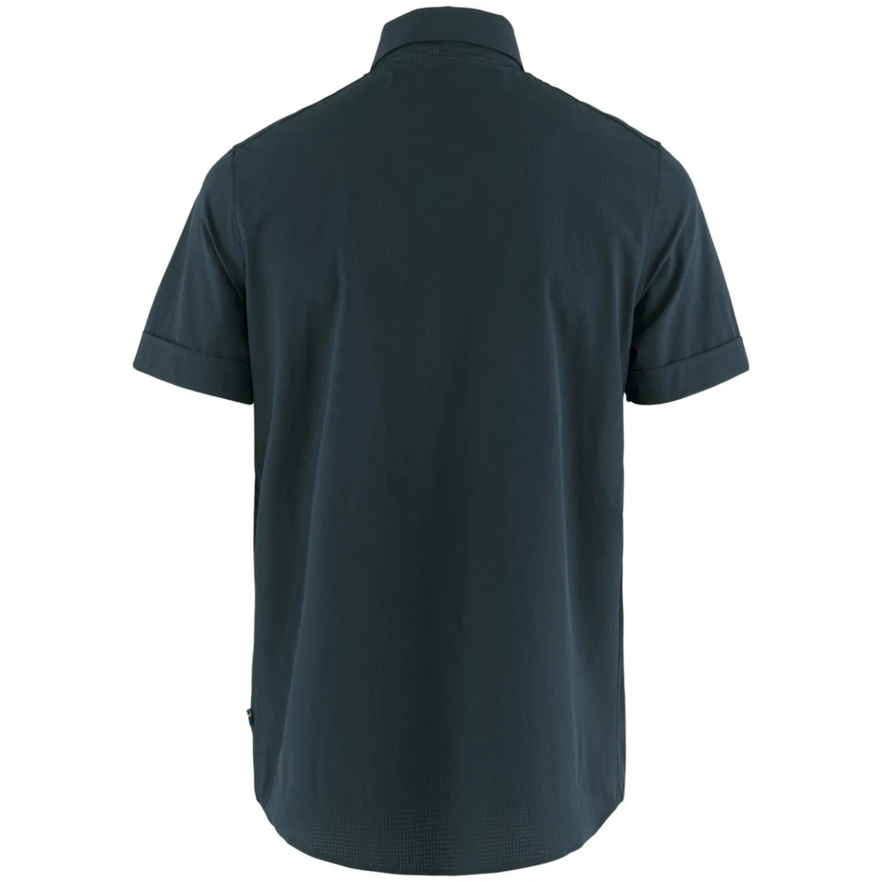 Short-sleeved Abisko Trekking Shirt will keep you comfortably cool even on really hot days on the trail. Made from a lightweight, technical fabric that wicks away moisture and lets in air at the same time as it feels cool against the skin. Double chest pockets with flaps that can be both loaded from the top or from the sides with vertical zippers and mesh lining – the latter can also be used as ventilation openings. Perfect for trekking and travelling, and can be packed into one of its own chest pockets.