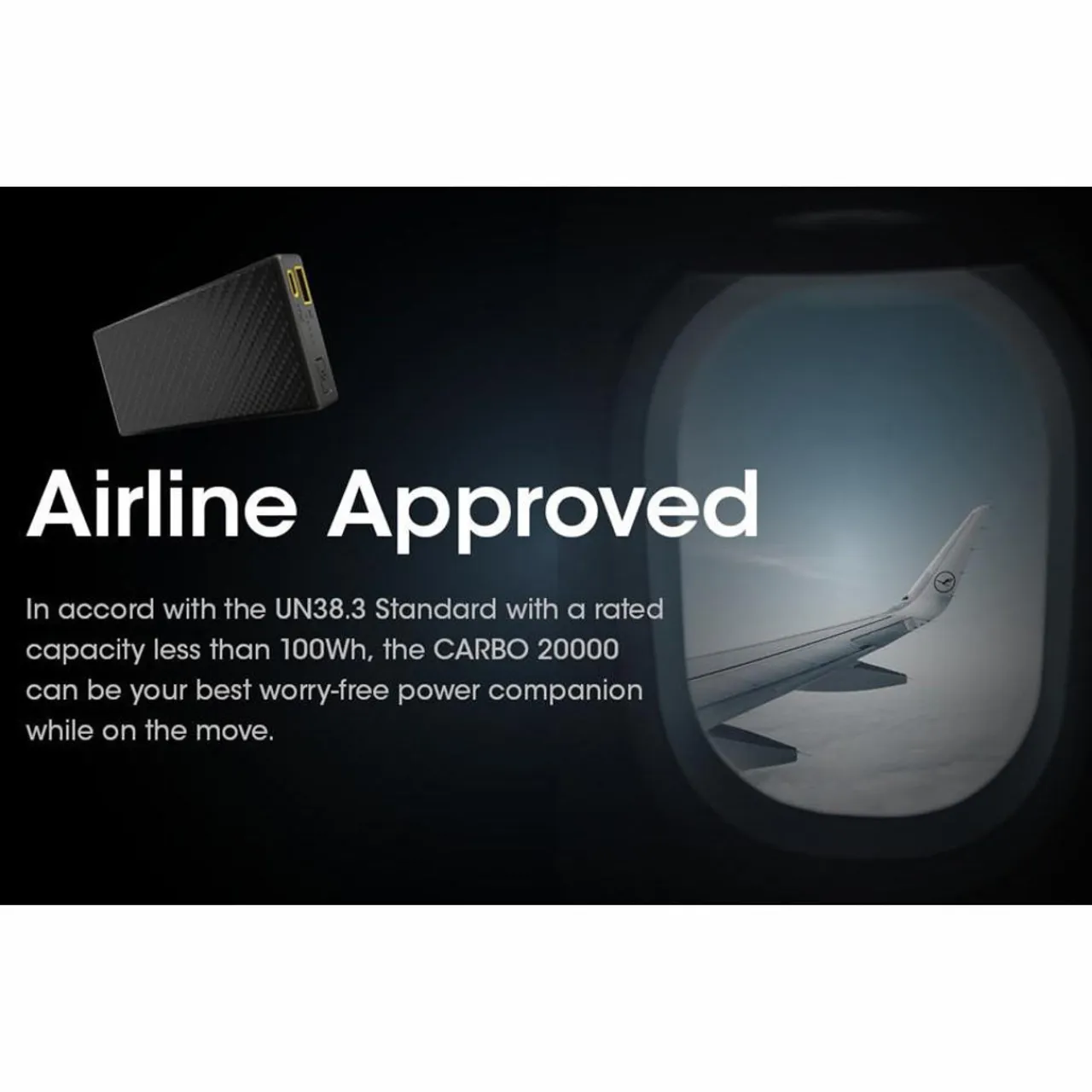 The Nitecore Carbo 20000 is an impressive and well-designed power bank. Its 20,000mAh capacity provides ample power to charge multiple devices several times over. The carbon fibre-reinforced polymer shell makes it extremely lightweight—just 296g—yet durable and resistant to drops, punctures, and water splashes.