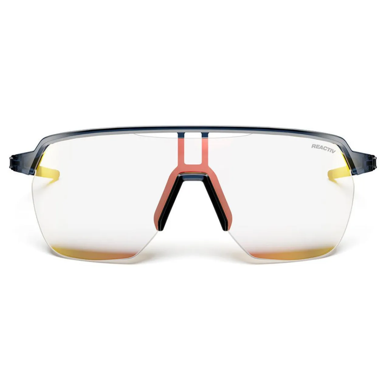 The Julbo Frequency Reactiv 0-3 High Contrast sunglasses weigh just 18g, but don’t mistake the weight for fragility. The frame’s semi-rimless design feels modern and unobtrusive, and the wide cylindrical lens offers genuinely panoramic coverage without the tunnel vision you sometimes get from more wrapped designs. I found the contrast-enhancing tint particularly helpful on uneven trails, where picking out subtle changes in terrain made a real difference.