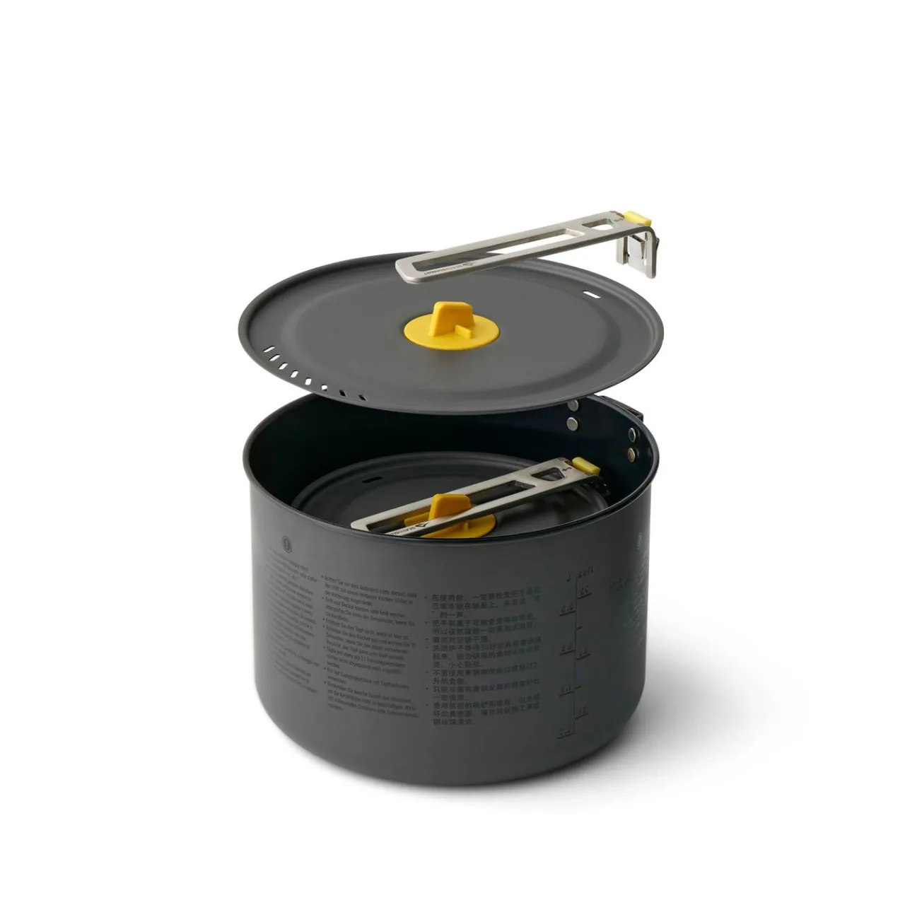 Weighing a combined 583 grams (213g for the 1.3L pot and 344g for the 3L), the set remains impressively lightweight without sacrificing durability. You don’t have to bring both pots on every trip, allowing you to pack what you need. The internal graded scale further enhances accuracy when measuring ingredients in the backcountry.