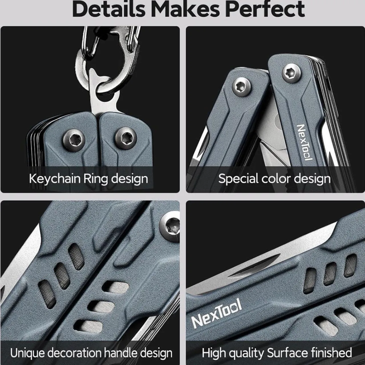 - Tools: Needle nose Pliers, Regular Pliers, Mini Wire Pliers, Flat Head Screwdriver, Sim Card Needle, Cross Head Screwdriver, Hanging Hole, Scissors, Bottle Opener, Can Opener and Knife.