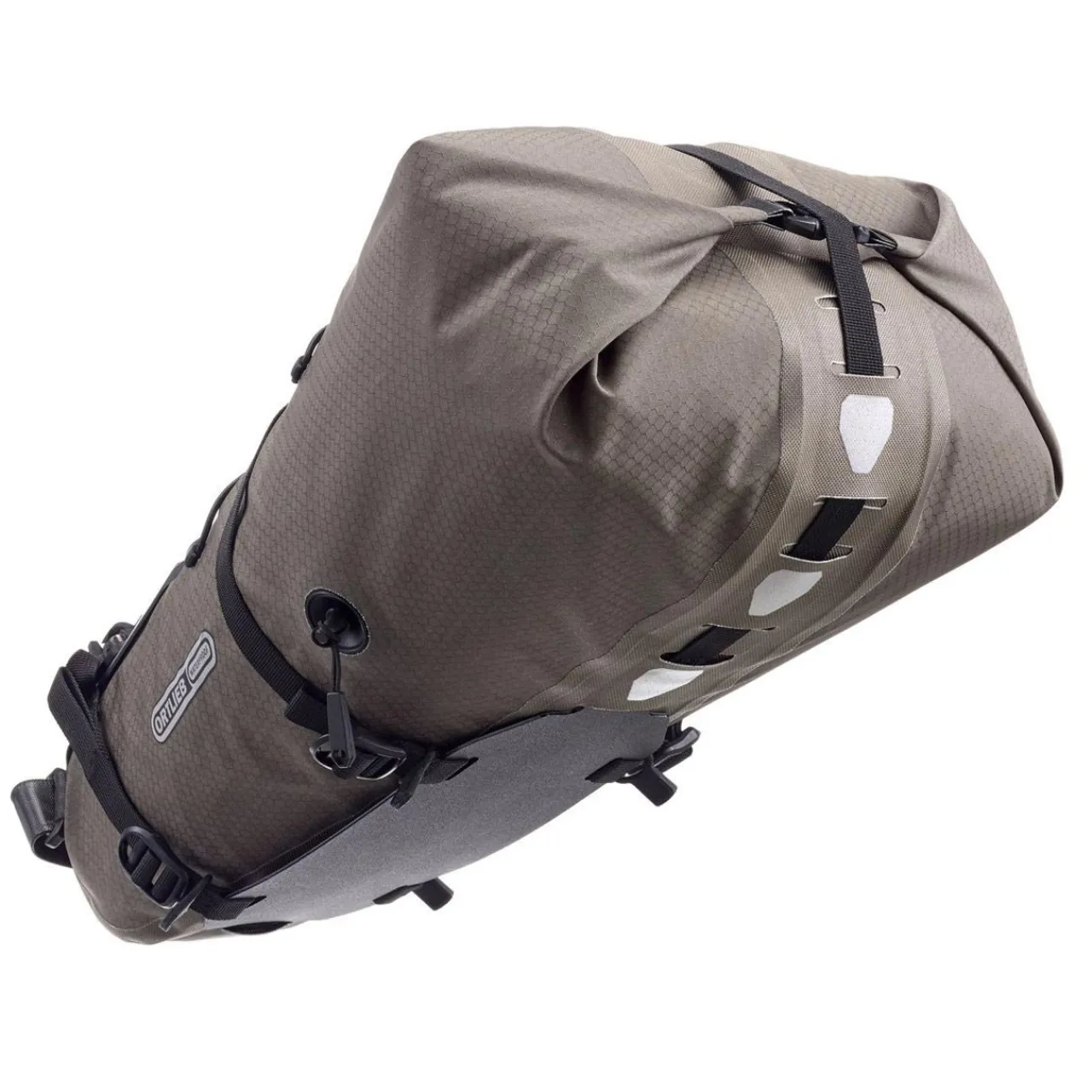 - Bag has an internal stiffener and four compression straps; securing the load very well to the saddle and seatpost