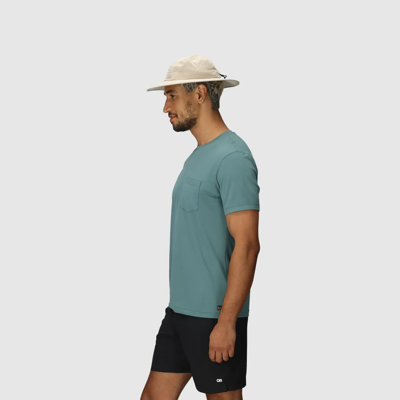 At 73g, this is one of the lightest brimmed hats I’ve used that l provides decent coverage. The 3-inch brim is slightly longer at the back, adding extra neck protection without feeling floppy or getting in the way. It’s well-ventilated, with discreet side perforations that help manage heat during. The fabric is soft and quick-drying, and holds its shape nicely even after being crammed into a pack.
