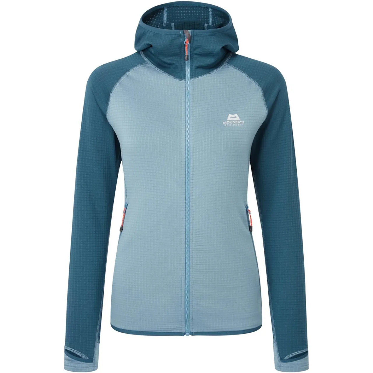 Mountain Equipment’s Womens Eclipse Hooded Jacket is still a lightweight fleece that uses an internal brushed grid backer that has excellent wicking capabilities and is quick drying. The grid backer feels soft against your skin so would be comfortable to wear as a baselayer or a mid layer. The new Technostretch fabric has impressive levels of stretch and still delivers a great combination of low weight and low bulk.