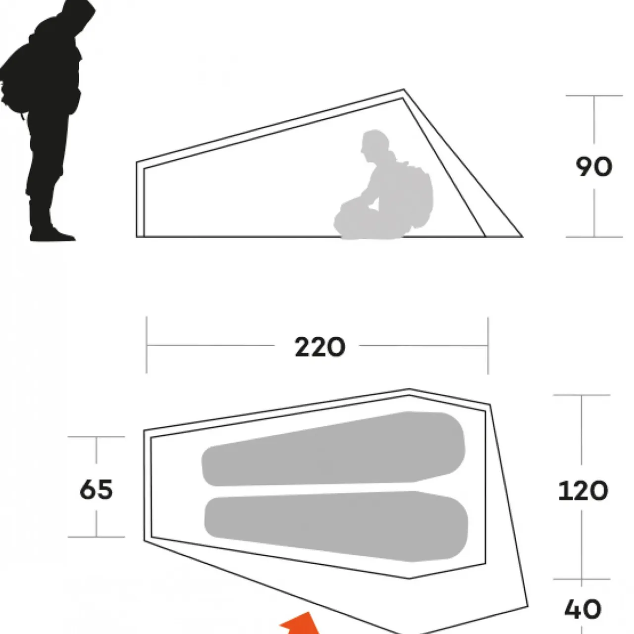 The ultralight Piuma 2 tent is developed for trekkers, bikepackers, backcountry and ultralights trips. The focus of the Piuma tent is to provide a good interior volume without suffering any penalty regarding functionality and weight. The full access to the apsis is enhanced by a zippered small door positioned on the head of the room that allows one to reach the narrowest front apsis part, without opening the room door.
