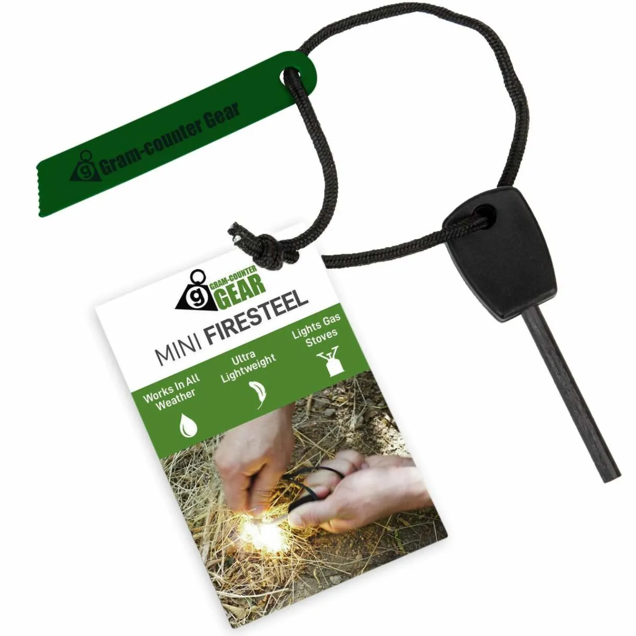 For lighting stoves instead of carrying matches we think the Mini Firesteel is a winner – at 14g it is as light as a box of matches or lighter anyway and unlike them, will produce a spark in any weather.