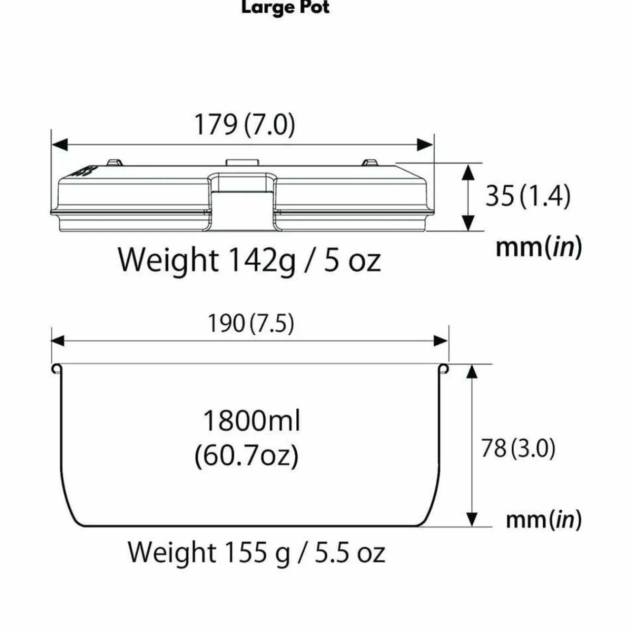 - Capacity Large/Small Pots: 61 oz/44 oz (1.8 L/1.3 L)