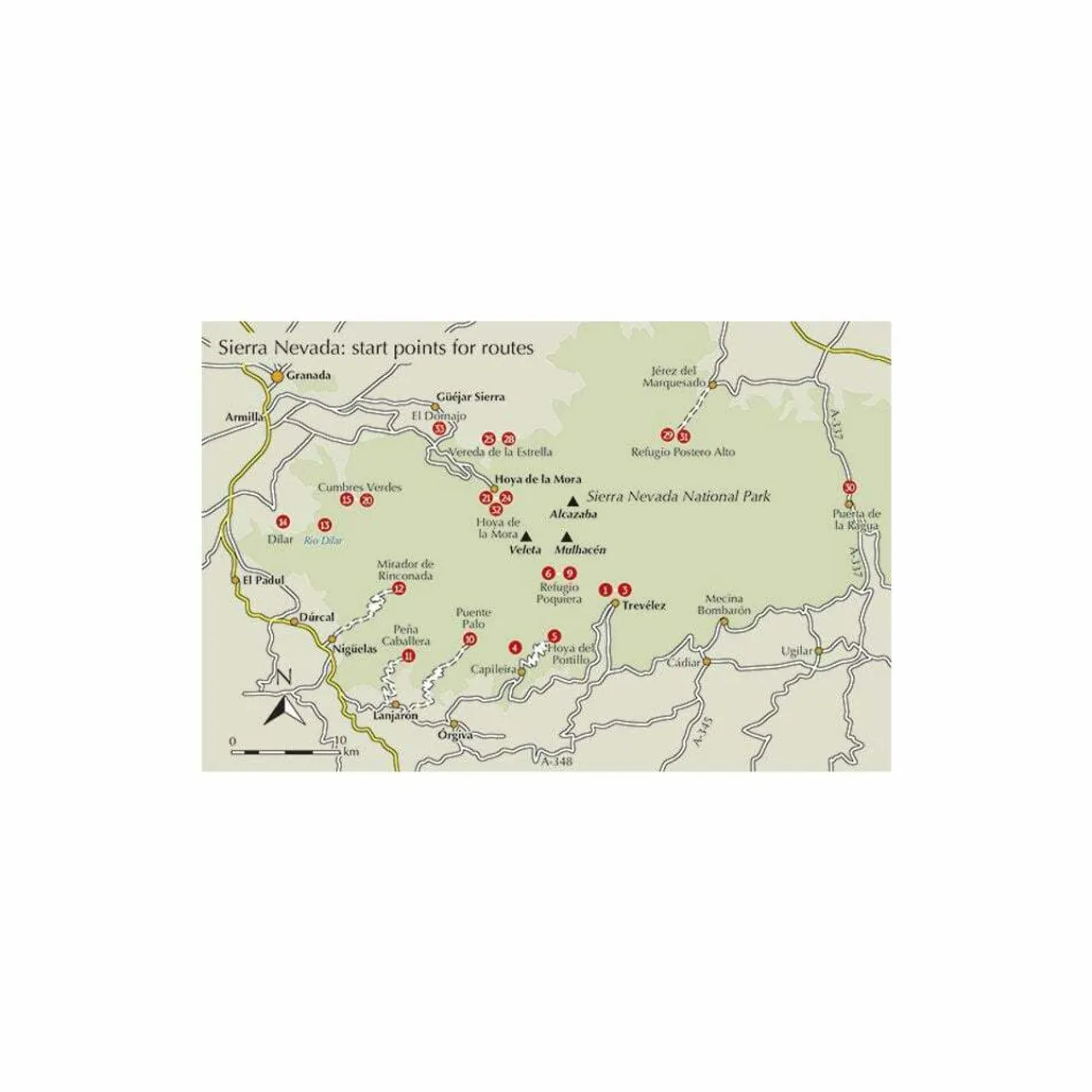 - Difficulty: Graded routes of varying difficulty, from easy half-day jaunts and day-trips to tough multi-day treks. High-level routes but also superb lower-level alternatives, including eight walks in the Cumbres Verdes and Dílar Valley hills SE of Granada. Five high mountain scrambles for the more adventurous (graded 2 to 3S)