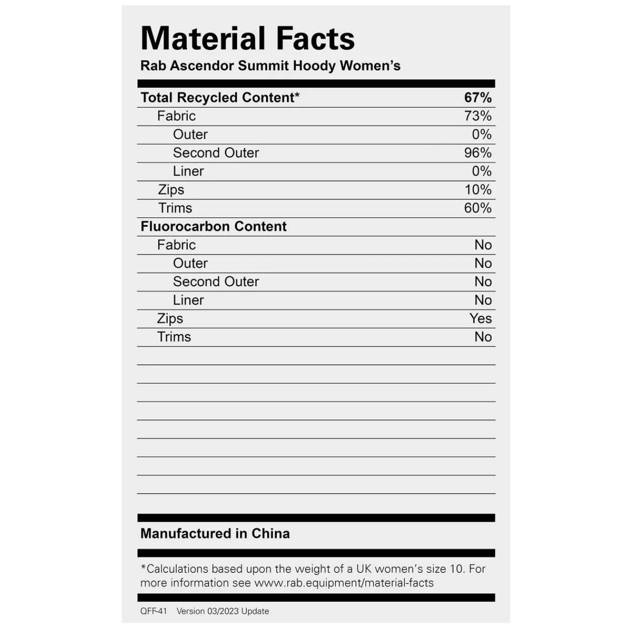 - Outer: 100% Polyamide, Acrylic coating. Outer 2: 96% Recycled Polyester, 4% Elastane Lining: 100% Polyester