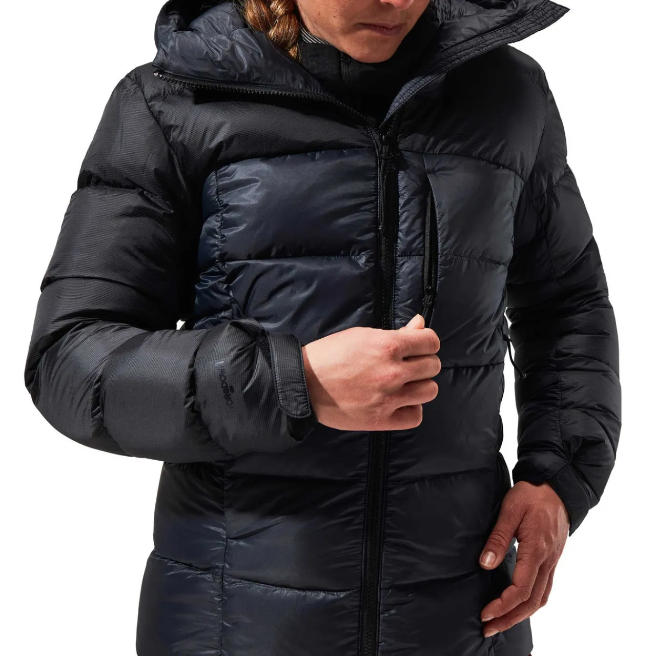 In terms of warmth the 850+ fill power is very good for the weight of this jacket meaning that it is designed as an outer layer for dry conditions and will keep you warm in the depths of Scottish winter or on the Alpine slopes. The use of Berghaus hydro down means that if you are caught out and the down does get wet it the down will be quick to dry and loft back up. However While the outer fabric is treated it would definitely be advised to use with a shell in really wet conditions. Â