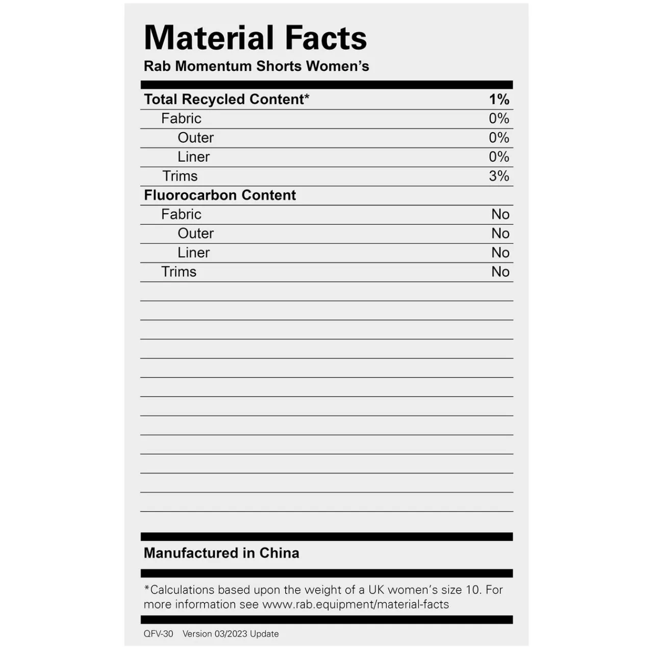 With stretch, mobility and high-performance fabric, the Momentum Shorts are built to keep you moving all day long no matter what terrain or conditions you encounter. Lightweight and fast drying the lightweight Matrix™ fabric with fluorocarbon-free DWR, offers wind and weather resistance, ideal for variable conditions. They have a comfortable, deep stretch waistband with a simple drawcord adjuster, two front hand pockets. Perfect for mountain trekking, hiking and general outdoor use.