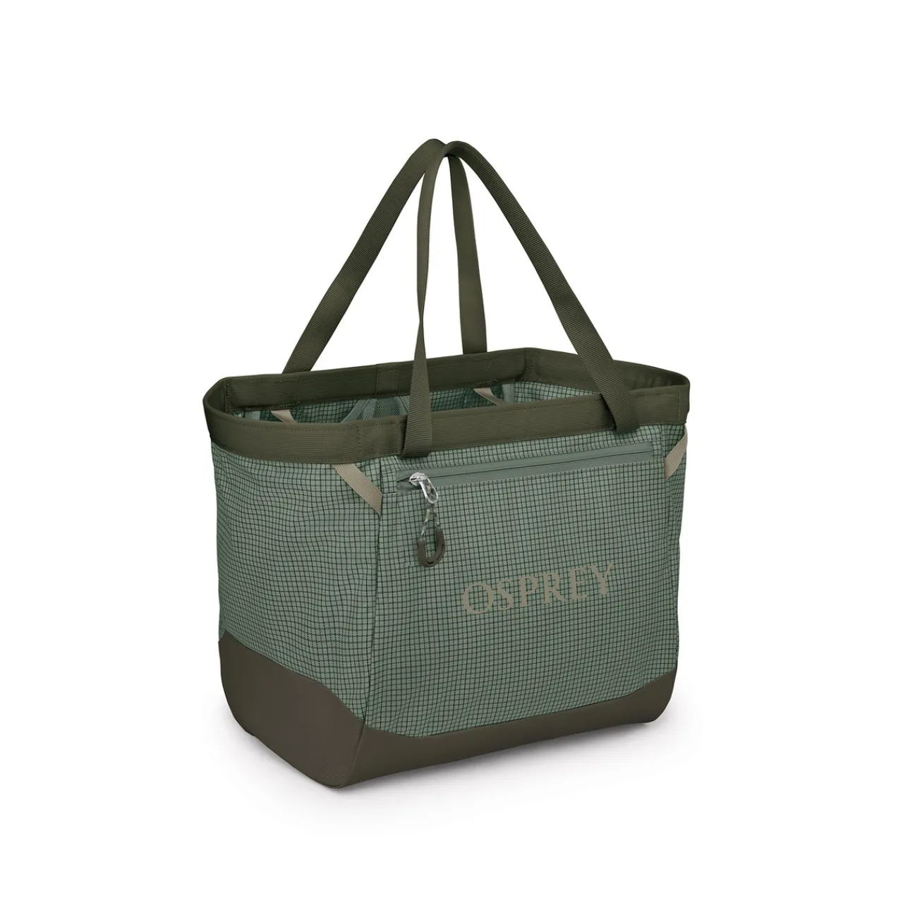 The Osprey Transporter Gear Tote 28L is fantastic for post-hike gear dumps, carrying gear to basecamp and last-minute supply runs. It stands upright on its own, making loading and unloading far easier than a floppy bag, and the wide opening is generous. At 522g, it’s not the lightest tote, but you’re getting structure, water-resistant fabric, and enough reinforcement to carry heavy loads without twisting or sagging.